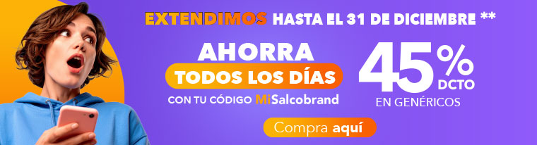 Promoción genéricos válida hasta el 31 de dicembre de 2025. Medicamentos sujetos a condición de venta. Quedan excluidos los genéricos clasificados como antineoplásicos y sueros. Términos y condiciones en Salcobrand.cl.